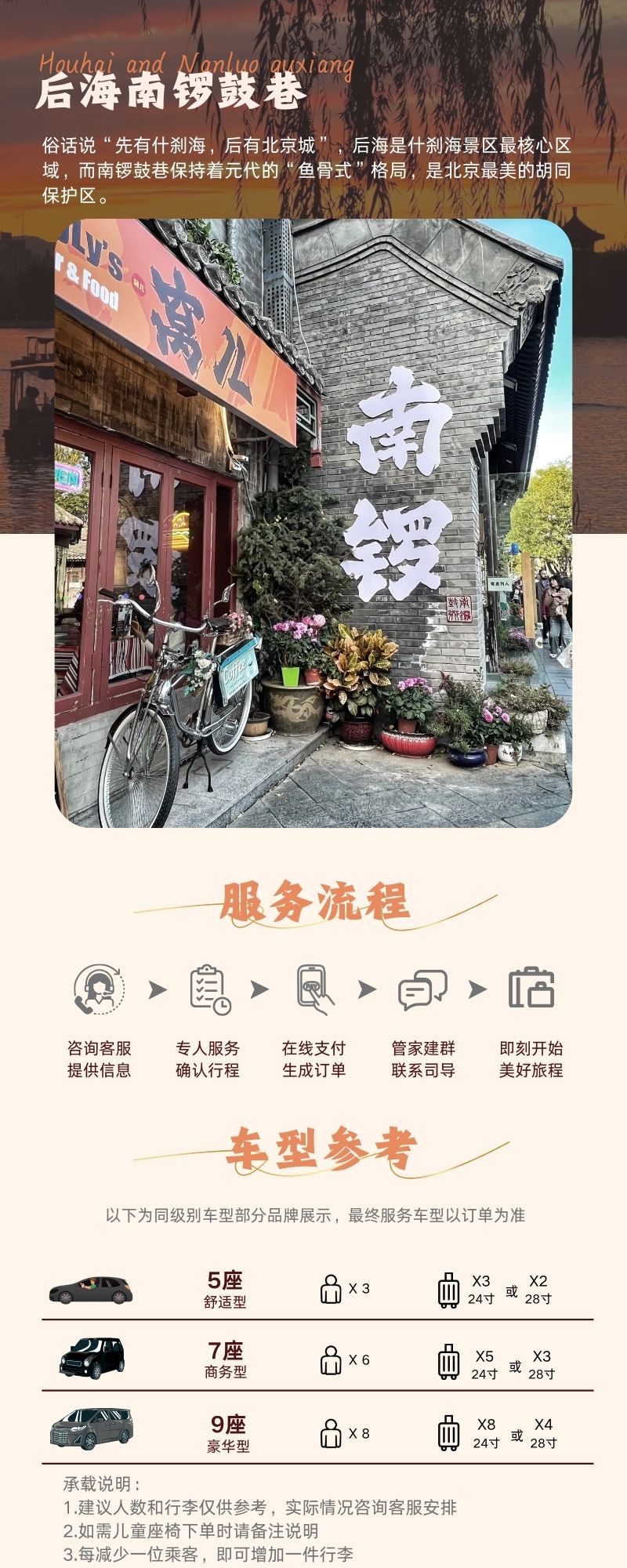 2、司导:1名司机兼导游服务(每日服务时间10小时,正常8:00-18:00),提供行程内驾驶和讲解服务,无拍摄服务